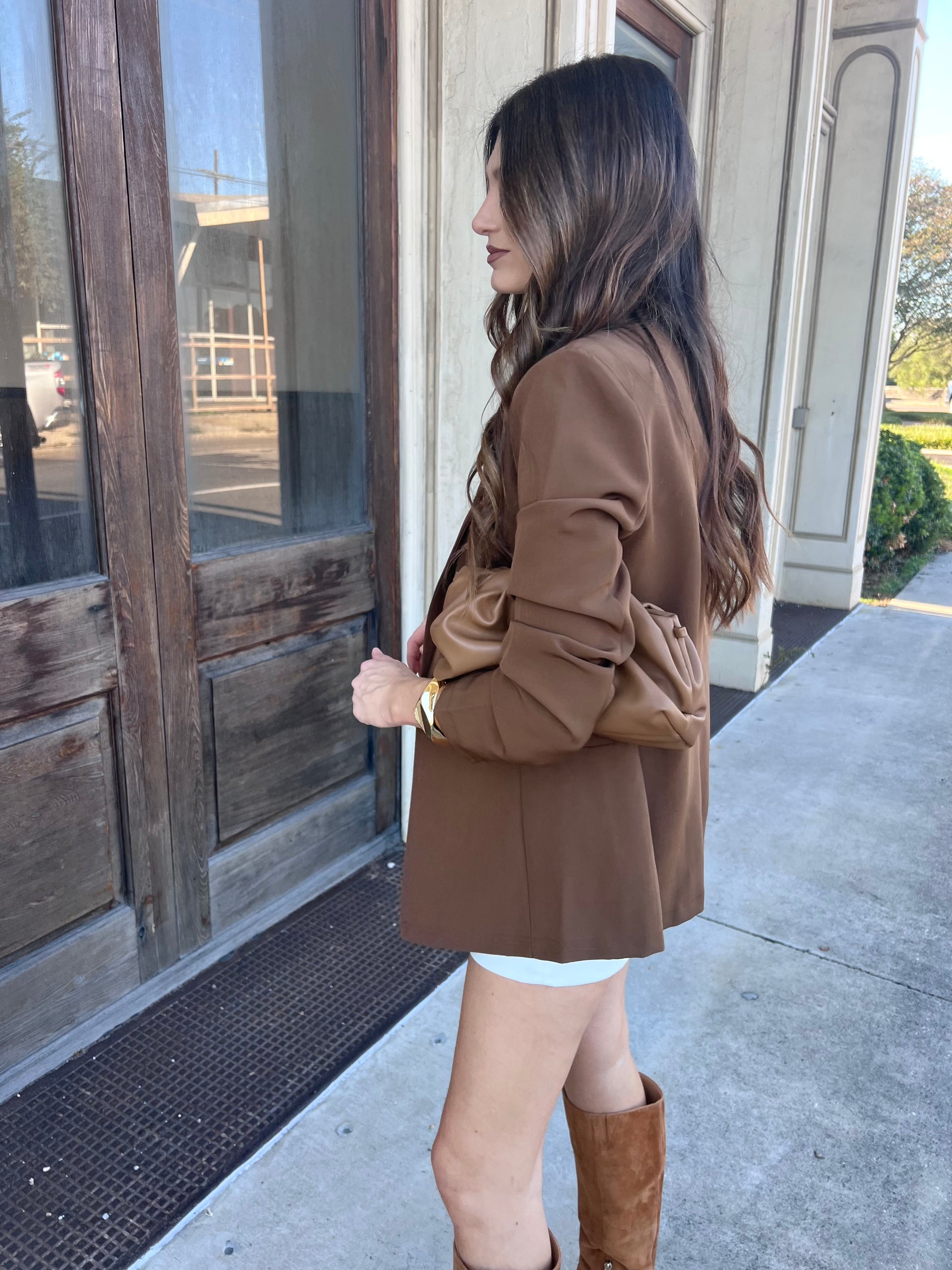 One thing about a blazer is that it is made to make a statement. The Romy blazer is the perfect piece to add to your wardrobe this season. The soft brown color makes it the perfect neutral to add to any outfit. It has the perfect amount of relaxed but still elevates any look. It is long sleeve and features functional buttons that could make for a more sophisticated look if buttoned up. Dressed up with heels for the office or dressed down with boots for girls night, The Romy is a no brainer.